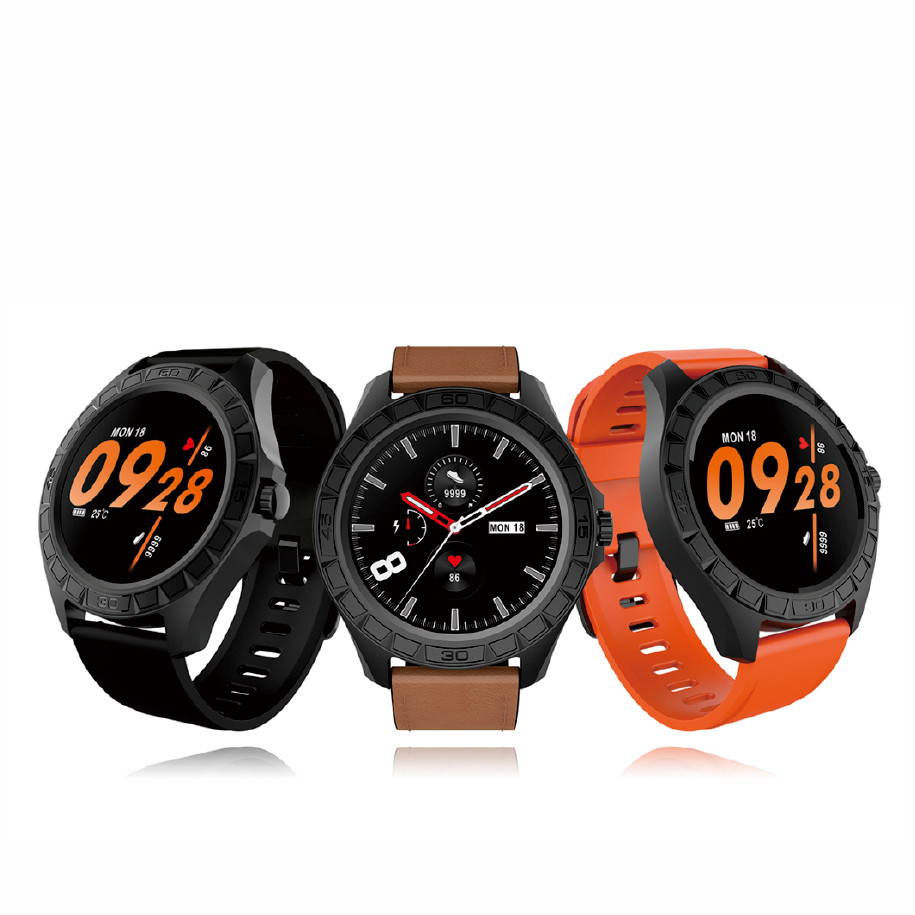 1.3”全圓全觸顯示屏 獨(dú)家個性化精美表盤,且APP能推送 24 H連續(xù)實(shí)時動態(tài)心率 300mAH大容量電池,續(xù)航時間達(dá)15天以上 支持23種多運(yùn)動模式 支持17國的本地化UI語言 支持IP68防水級別 搭配皮質(zhì)表帶和TPU表帶,兼顧商務(wù)和運(yùn)動風(fēng)格 可接受為客戶免費(fèi)定制表盤,彩盒包裝,表帶顏色,表扣鐳雕LOGO內(nèi)容